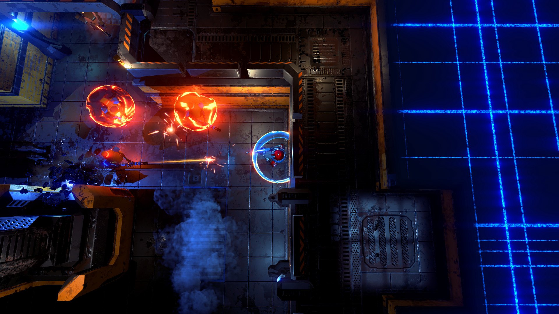 Crazy Rogue-like top-down shooter avec un mécanisme de mouvement innovant, des robots-cultes insensés et de nombreuses balles pour assurer votre destruction avant que vous ne développiez un grand méchant robot !