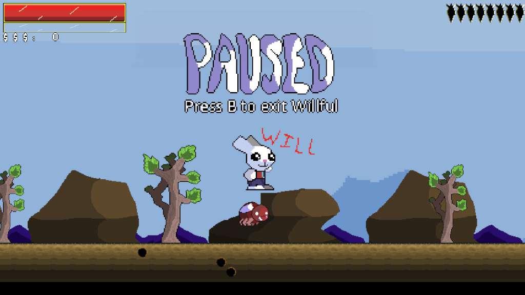 Willful est un jeu d’aventure qui emprunte des éléments de Mega Man, Metroid et d’autres classiques des années 80 et 90. Le Joueur prend les armes comme une offrande sacrificielle nommée Will. Tandis que le joueur explore les différents domaines dans le jeu, ils peuvent dépenser de l’argent sur les powerups et les carottes dorées qui donnent accès à de nouveaux mondes. C’est à vous d’arrêter le règne d’une entité mystérieuse nommée Behemoth, et de son groupe de disciples fous ! Caractéristiques Tirer des choses Faire des amis avec un rock golem Acheter à des concessionnaires de carottes esquisses Traverser une puce informatique géante Bataille contre les patrons Explorez dix mondes différents